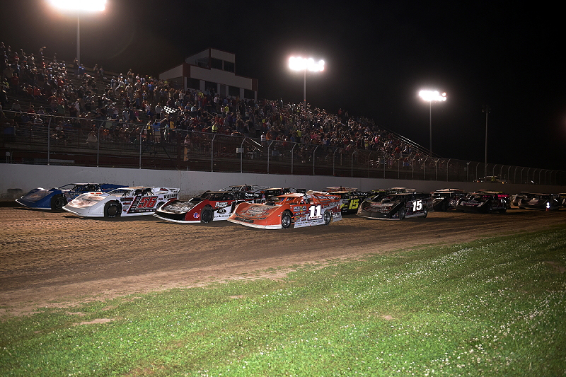 Gordy Gundaker helps lead the four-wide salute to the fans around Randolph County (MO) Raceway -